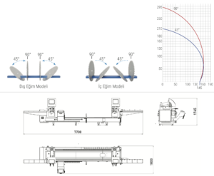Minimum 560 mm ve maksimum 4040 mm uzunluğundaki profillerin kesim işlemlerini aynı anda çift kafa ile sağlar.